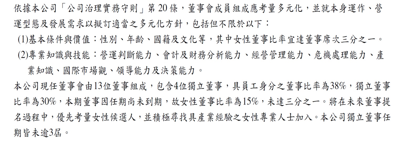 由13位董事組成,包含4位獨立董事及9位非獨立董事。