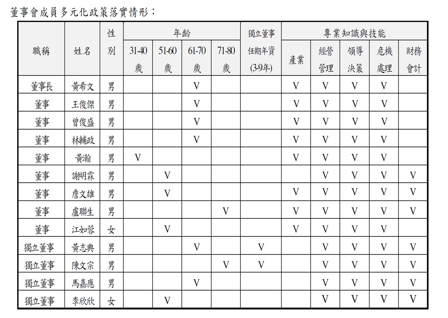 本公司於114年6月16日股東常會全面改選董事會,任期自114年6月16日至117年6月15日,